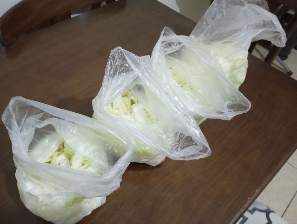 Yaptığım şey doğradığım lahanaları 3 dak. Sıcak suda, 3 dak. Soğuk suda bekletip kurutup poşetlemek. Ardından dondurucuya girecekler.