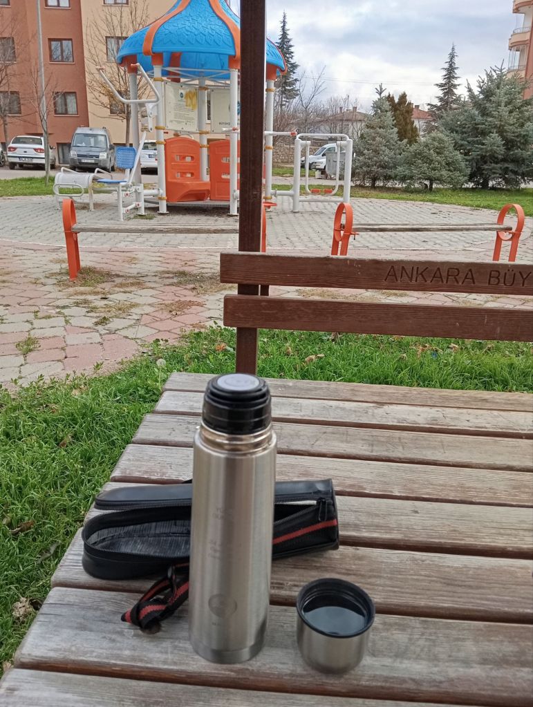 Bugün bir termos action yapayım dedim ve çayımı termosuma koyup evimin önündeki parka çıktım. Güzelce bir keyif yaptım.