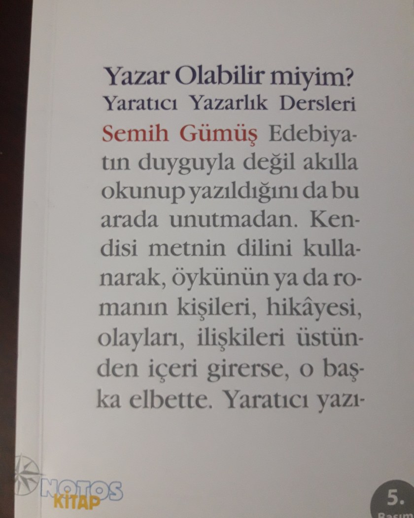 Semih Gümüş’ün bu kitabı da bir Kasım gecesinde okundu ve bitti. Kitap yaratıcı yazarlıkla ilgili belli başlı konulara değinmiş. Kafasında yazmak olan birisi bence mutlaka bu kitabı okumalı.