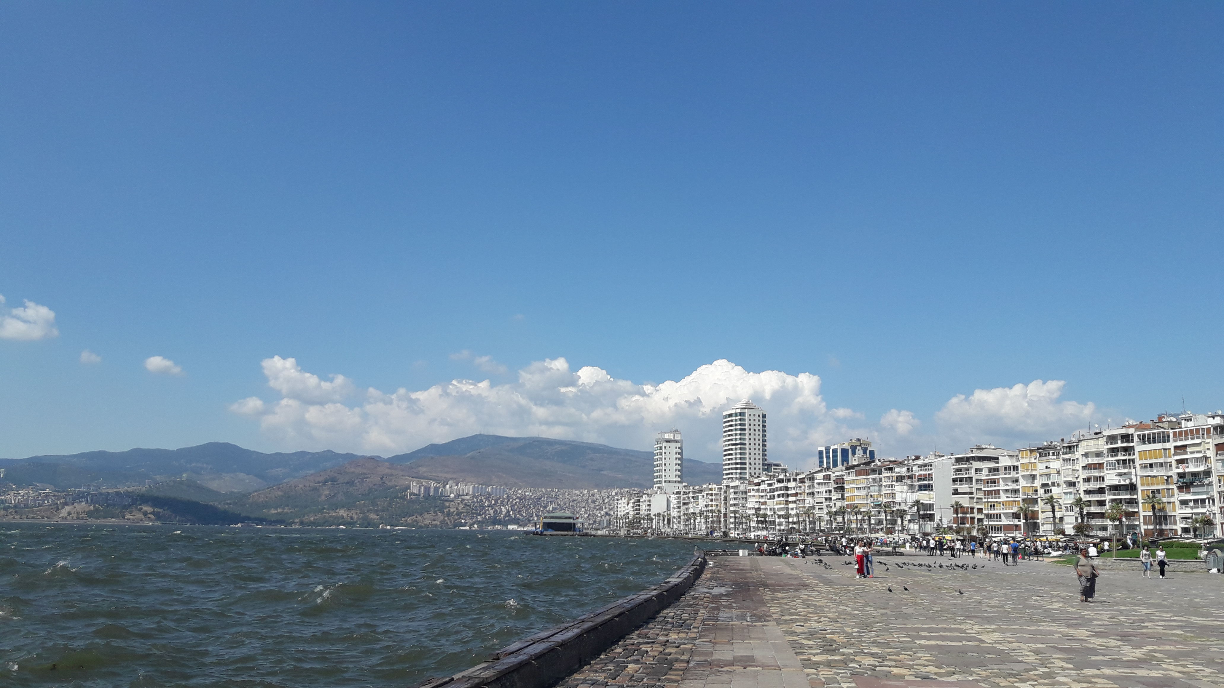 Sonra Kordon’u geziyorum. Kordon işte harika. Deniz dalgalı ve rüzgar var. İzmir’in guzel insanlari çevrede bisiklete biniyor, balık tutuyor, yürüyüş yapıyor guzel bir ortam.